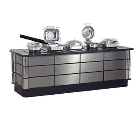 Contemporary Buffet, 96" L x 30" W x 34" H, with five built in induction stoves, (3) 120v/60/1-ph, 9000 watts, 75 amps, NEMA (3) cords, (2) L5-30P, (1) L5-20P