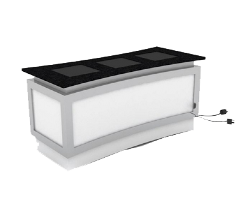 Contemporary Buffet, 69" L x 30" W x 34" H, with three built in induction stoves, floating top, (2) 120v/60/1-ph, 5400 watts, 45 amps, NEMA (1) L5-30P, (1) L5-20P
