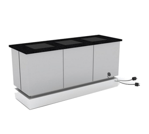 Contemporary Buffet, 69" L x 30" W x 34" H, with three built in induction stoves, (2) 120v/60/1-ph, 5400 watts, 45 amps, NEMA (1) L5-30P, (1) L5-20P