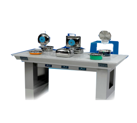 Mobile Communal Table, 84" x 39" x 34"H, solid stone top, stainless steel clad construction, includes: (6) 500 watt built-in induction warming stoves (Item 12086DI), (4) 110v outlets-2 on each side, (4) duplex power receptacles with USB charging ports for mobile devices, (2) flip up control panels on each side, flip up access door for electrical wire and plug, (4) casters, (2) 120V/60/1-ph, 30amp power cords