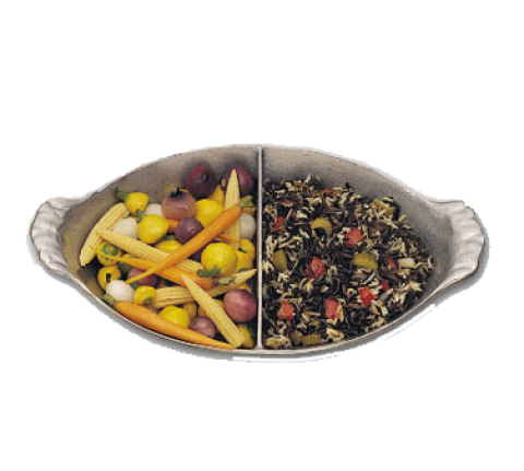 Au Gratin Pan, 2 qt., 8-1/2" x 15", divided, oval, aluminum with Pewter-Glo finish, NSF