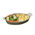 Divided Au Gratin Pan, 2 qt., 8-1/2" x 15", oval, aluminum with ceramic-look coating, Sandstone, Calypso Green, NSF