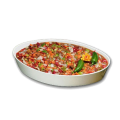 Baker, 4 qt., 10-1/4" x 15-3/4" x 2-5/8", oval, aluminum with ceramic-look coating, Sandstone, Dark Blue, NSF