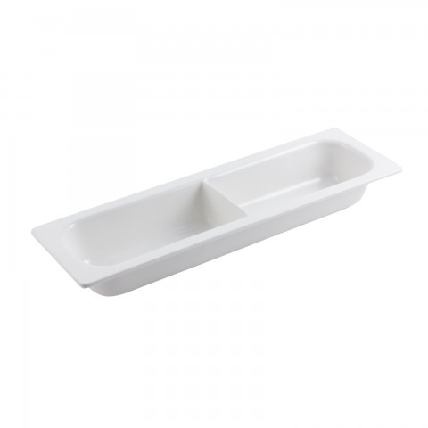 Chafer Food Pan, with divider, 1/2 size long, 3-1/2 qt., 20-1/2" x 6-1/2" x 2-1/2", rectangular, aluminum with ceramic-look coating, Sandstone, Matte Dark Gray