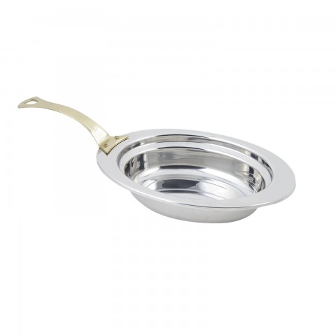 Food Pan, full oval, 2 qt. (64 oz.) capacity, 13-1/8" x 8-7/8" x 2-1/2", with long handle, plain design, stainless steel, NSF, UL