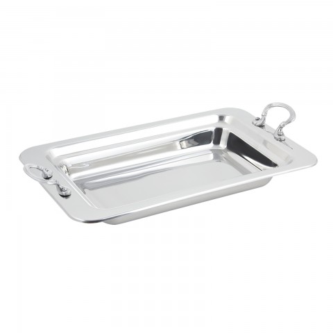 Food Pan, 4 qt. (128 oz.) capacity, 19-1/2" x 12" x 2-1/4", plain design, rectangular, with round stainless steel handles, vapor lock shoulder, stainless steel, NSF, UL