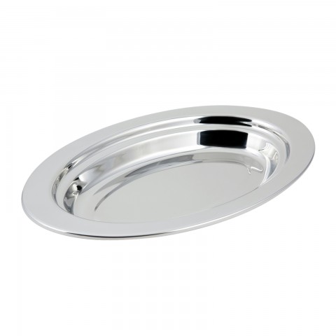 Food Pan, full oval, 2-1/2 qt. (80 oz.) capacity, 19" x 11-13/16" x 2", plain design, stainless steel, NSF, UL