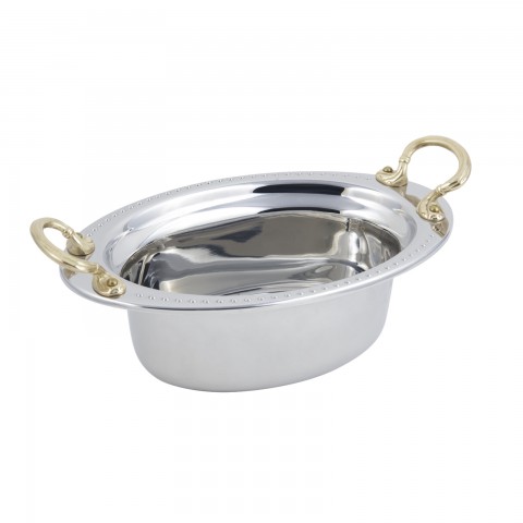 Food Pan, full oval, 3-3/4 qt. (120 oz.) capacity, 13-1/8" x 8-7/8" x 4-1/4", with round handles, Bolero design, vapor lock shoulder, stainless steel, NSF, UL