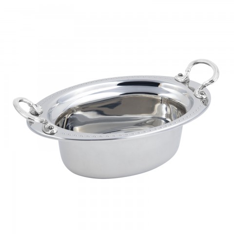 Food Pan, full oval, 3-3/4 qt. (120 oz.) capacity, 13-1/8" x 8-7/8" x 4-1/4", with round stainless steel handles, Bolero design, vapor lock shoulder, stainless steel, NSF, UL