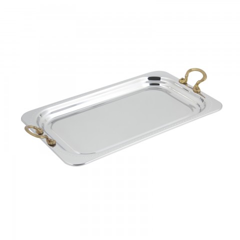 Food Pan, full size, 4-1/2 qt. (144 oz.) capacity, 21-1/2" x 13-1/2" x 1-1/4", rectangular, with round handles, Bolero design, stainless steel, NSF, UL