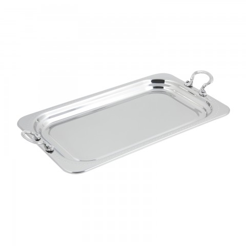 Food Pan, full size, 4-1/2 qt. (144 oz.) capacity, 21-1/2" x 13-1/2" x 1-1/4", rectangular, with round stainless steel handles, Bolero design, stainless steel, NSF, UL