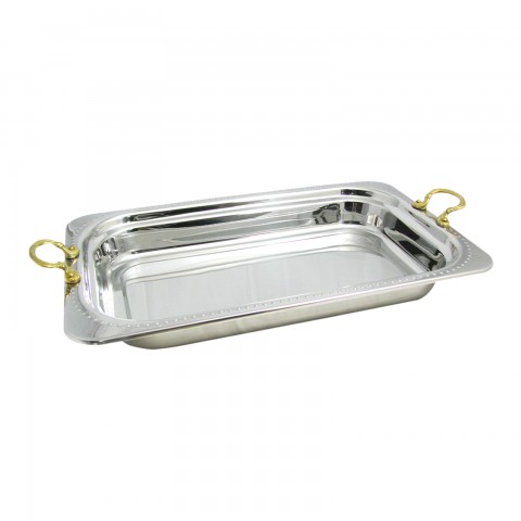 Food Pan, full size, 9 qt. (288 oz.) capacity, 21-1/2" x 13-1/2" x 2-5/8", rectangular, with round handles, Bolero design, stainless steel, NSF, UL