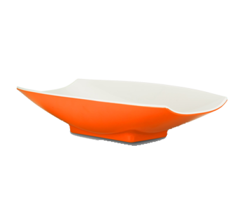 Serving Bowl, 32 oz. (1 qt.), 12" x 6-3/4" x 2-3/4", curved, rectangular, melamine, two-tone, orange/white