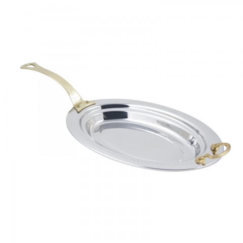 Food Pan, full oval, 2-1/2 qt. (80 oz.) capacity, 19" x 11-13/16" x 2", with long handle, Bolero design, stainless steel, NSF, UL