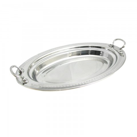 Food Pan, full oval, 2-1/2 qt. (80 oz.) capacity, 19" x 11-13/16" x 2", with round stainless steel handles, Bolero design, stainless steel, NSF, UL