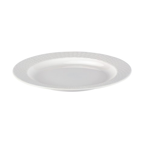 Buffet Plate, 12-1/4" dia., round, melamine, high gloss white/woven pattern border