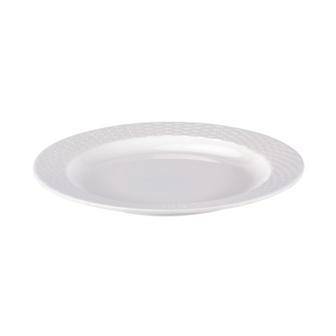 Dinner Plate, 10-3/4" dia., round, melamine, high gloss white/woven pattern border