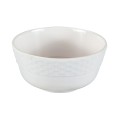 Bowl, 8 oz., 4" dia. x 2", round, melamine, high gloss white/woven pattern border