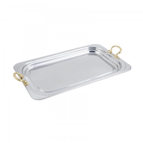 Food Pan, full size, 4-1/2 qt. (144 oz.) capacity, 21-1/2" x 13-1/2" x 1-1/4", rectangular, with round handles, Laurel design, stainless steel, NSF, UL