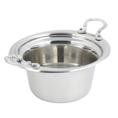 Casserole/Steamtable Dish, 2 qt. (64 oz.) capacity, 10" x 9" x 4-3/4", round, with round stainless steel handles, stainless steel, Laurel on the rim, NSF, UL