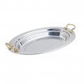 Food Pan, full oval, 2-1/2 qt. (80 oz.) capacity, 19" x 11-13/16" x 2", with round handles, stainless steel, Laurel design, NSF, UL