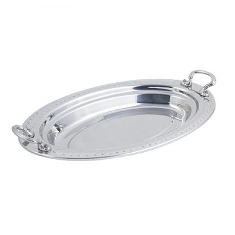 Food Pan, full oval, 2-1/2 qt. (80 oz.) capacity, 19" x 11-13/16" x 2", with round stainless steel handles, stainless steel, Laurel design, NSF, UL