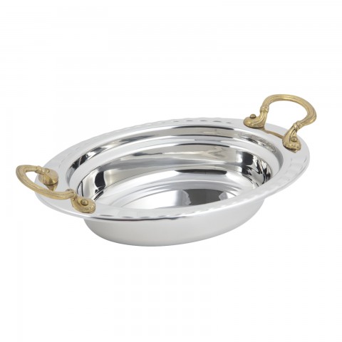 Food Pan, full oval, 2 qt. (64 oz.) capacity, 13-1/8" x 8-7/8" x 2-1/2", with round handles, stainless steel, Arches design, NSF, UL