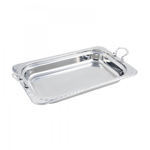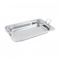 Food Pan, full size, 9 qt. (288 oz.) capacity, 21-1/2" x 13-1/2" x 2-5/8", rectangular, with round stainless steel handles, stainless steel, Arches design, NSF, UL