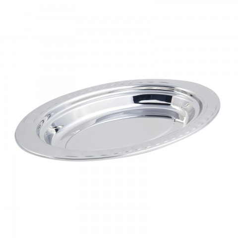 Food Pan, full oval, 2-1/2 qt. (80 oz.) capacity, 19" x 11-13/16" x 2", stainless steel, Arches design, NSF, UL