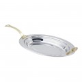 Food Pan, full oval, 2-1/2 qt. (80 oz.) capacity, 19" x 11-13/16" x 2", with long handle, stainless steel, Arches design, NSF, UL