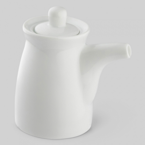 Soy Sauce Pot, top 2-1/2" dia., bottom 2-13/16" dia., 5"H, with lid, ceramic, white