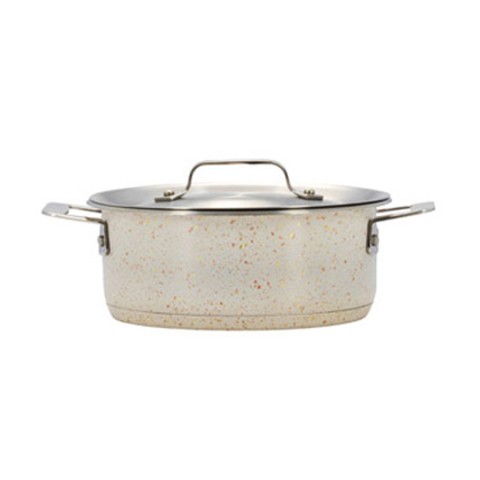 HotStone Cucina Casserole, 3 qt., 8-5/8" dia. x 3-1/4" H, round, with cover, (2) 1-1/8" square handles, induction bottom, oven safe up to 375°F, 18/8 stainless steel, Desert