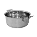 Cucina Casserole Dish, 3 qt., 8-5/8" dia. x 3-3/8"H, (2) 1-1/8" square handles, with lid, induction bottom, stainless steel, hammered finish, NSF