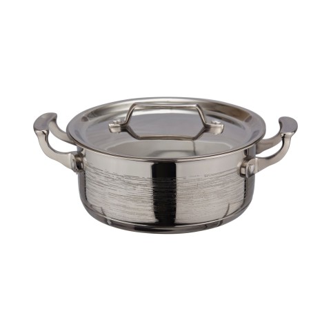 Cucina Casserole Dish, 3 qt., 8-5/8" dia. x 3-1/4"H, (2) 1-1/8" square handles, with lid, induction bottom, stainless steel, rain finish