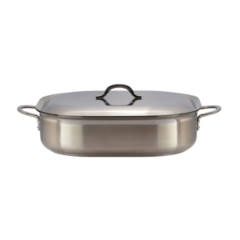 Classic Country French Oven Dish, 7 qt., 15" x 11" x 4", with lid, handled, induction bottom, clad, two-tone stainless steel, NSF