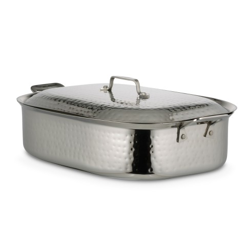 Cucina French Oven Dish, 7 qt., 15" x 11" x 4-1/8", (2) 1-1/4" square handles, with lid, handled, induction bottom, stainless steel, hammered finish