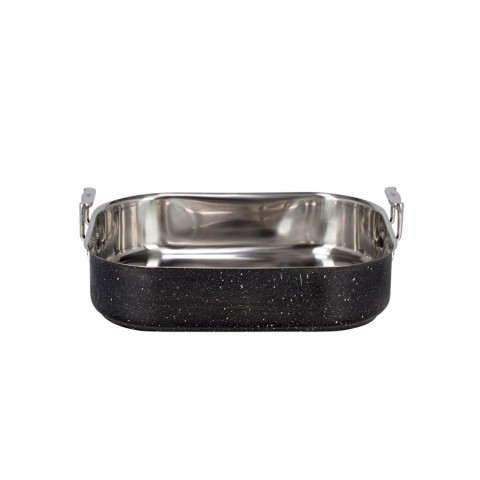 HotStone Cucina Rotisserie Pan, 10 qt., 16-1/2" x 14-1/4" x 4" H, rectangular, (2) 1/2" square handles, induction bottom, oven safe to 375°F, 18/8 stainless steel, Galaxy
