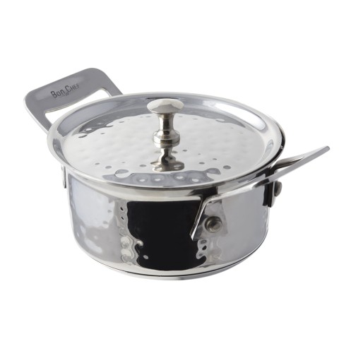 Cucina Side Dish, 16 oz., 4-7/8" dia. x 2-1/2"H, (2) 1" square handles, round, with lid, induction bottom, hammered finish