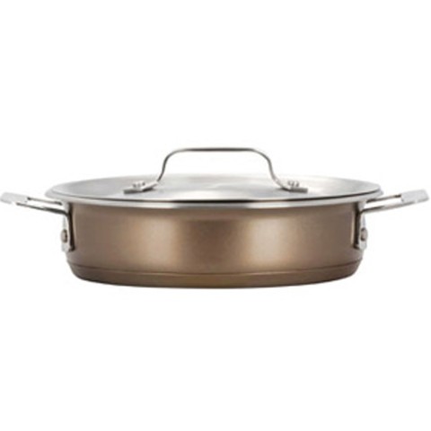 HotStone Cucina Casserole, 1 qt. 24 oz., 8-1/2" dia. x 2-5/8" H, round, with cover, (2) 1-1/4" square riveted handles, induction bottom, oven safe up to 375°F, 18/8 stainless steel, taupe