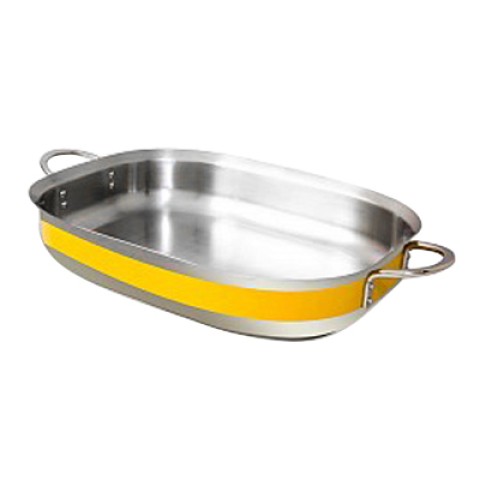 Classic Country French Pan, 5 qt., 15-3/4" x 11-7/8" x 2-7/8", oblong, with lid, handled, induction bottom, clad, stainless steel, yellow, NSF