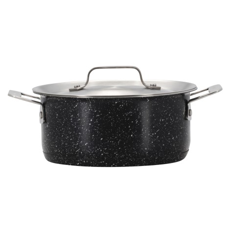 HotStone Cucina Pan, 40 oz., 6-3/4" dia. x 2-3/4" H, round, with cover, (2) 1" square handles, induction bottom, oven safe to 375°F, 18/8 stainless steel, Galaxy