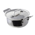 Cucina Pan, 40 oz. (1-1/4 qt.), 6-7/8" dia. x 3"H, (2) 1" square handles, round, with lid, induction bottom, stainless steel, hammered finish