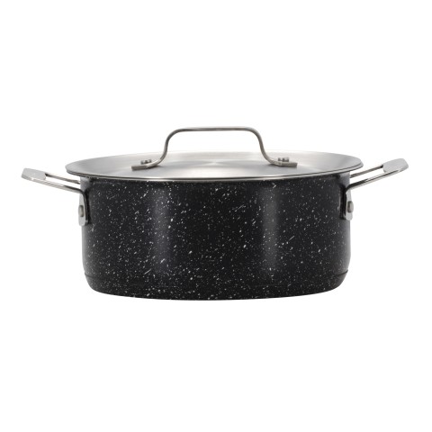 HotStone Cucina Dish, 36 oz., 6-3/4" dia. x 2-5/8" H, round, with cover, (2) 1" square riveted handles, induction bottom, oven safe up to 375°F, 18/8 stainless steel, Galaxy