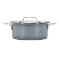 HotStone Cucina Dish, 36 oz., 6-3/4" dia. x 2-5/8" H, round, with cover, (2) 1" square riveted handles, induction bottom, oven safe up to 375°F, 18/8 stainless steel, Starlight