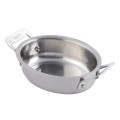 Cucina Casserole Dish, 20 oz., are 6-3/8” x 5” x 1-3/4", (2) 1-1/8" square handles, oval, 18/8 stainless steel