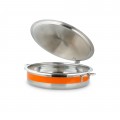 Classic Country French Pot, 9 qt., 14-3/4" dia. x 3-3/8"H, round, with hinged lid, (2) 2" round handles, induction bottom, stainless steel, orange, NSF