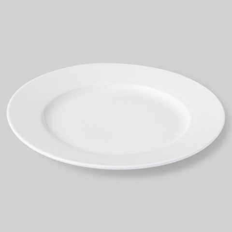 Rim Plate, 9" DIA x 1"H, Round, Dishwasher Safe, Oven Safe, Microwave Safe, Lead Free, Porcelain Alumina Vitfrieid Body (high temperature firing 2430*F), Bright White (3 Year Chip Warranty), Mezzo (minimum order = case quantity)