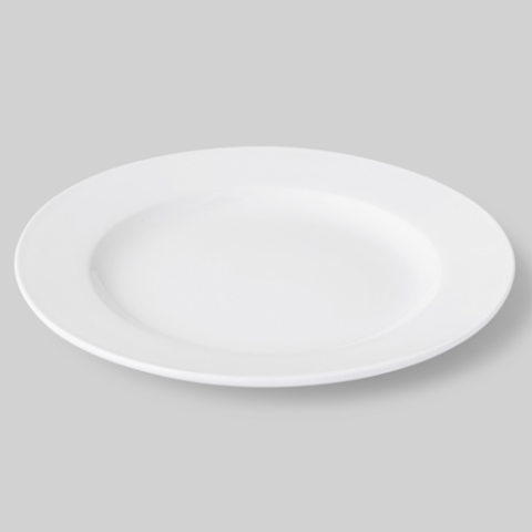 Rim Plate, 11" DIA x 1.2"H, Round, Dishwasher Safe, Oven Safe, Microwave Safe, Lead Free, Porcelain Alumina Vitfrieid Body (high temperature firing 2430*F), Bright White (3 Year Chip Warranty), Mezzo (minimum order = case quantity)
