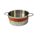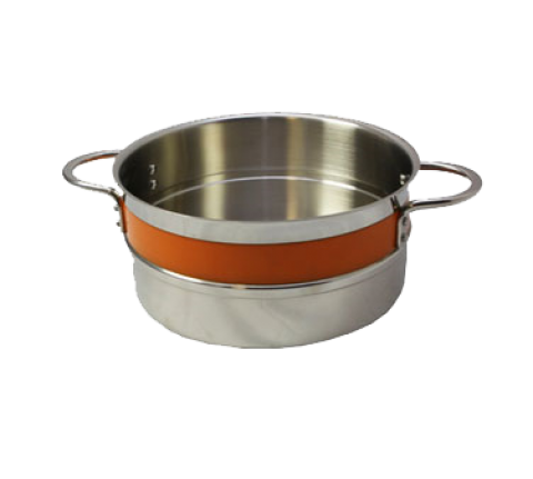 Classic Country French Collection Pot, 4 qt. 9 oz. (4.3 qt.), 9-3/8" dia. x 4-3/8"H, (2) 2" round handles, round, single wall, without cover, riveted handle, can be used with steam tables, radiant heat & refrigerated or ice wells, 1/2 color, 18/10 stainless steel with aluminum core, NSF