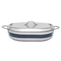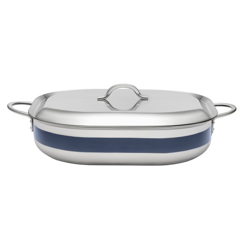 Country French X Oven Dish, 7 qt., 15" x 11" x 4", oblong, with lid, induction bottom, stainless steel, cobalt blue